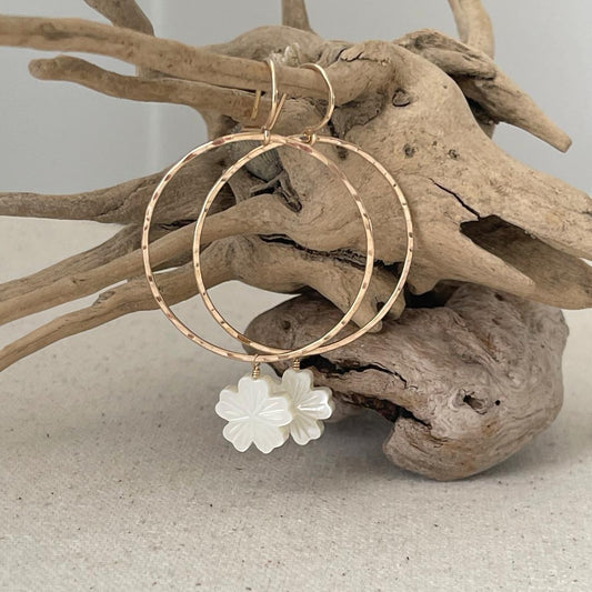 Tropical Flower Dangle Hoop Earrings