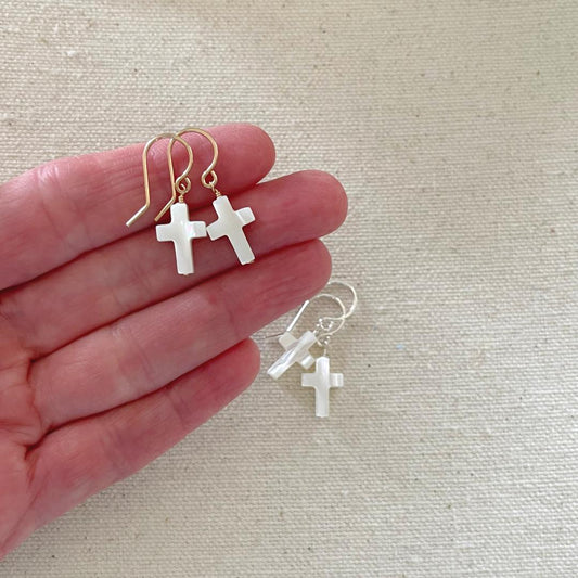 Mother of Pearl Cross Dangle Earrings